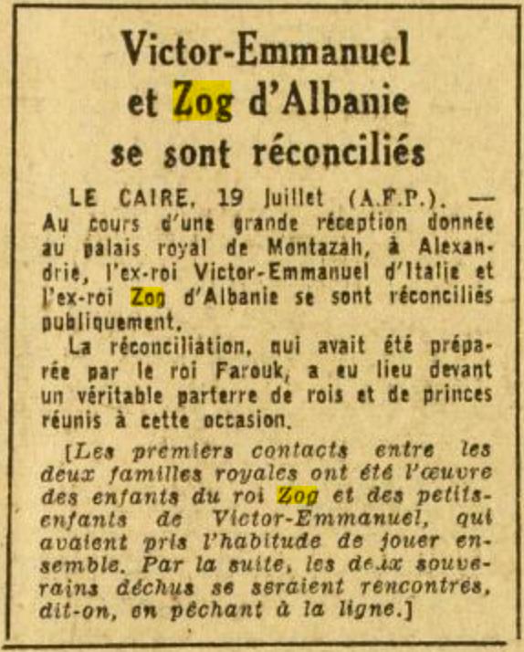 France-Soir (1947) – Ja kush i pajtoi publikisht Viktor-Emanuelin III dhe Zogun I
