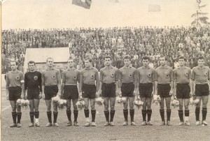 10. Partizani-Këlni 0-0: Nga e majta: Deliallisi, Janku, Frashëri, Vaso, Shllaku, O.Mema. Ulur majtas: Jashari, Pano, Ndini, Bespalla, Kraja