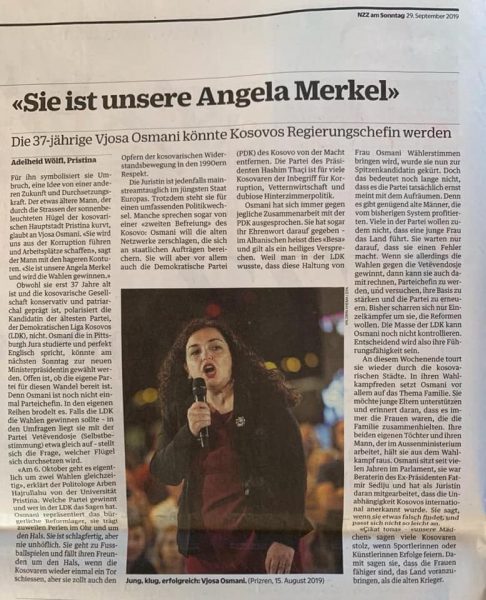 Gazeta e famshme zvicerane NZZ krahason Vjosa Osmanin me Angela Merkelin