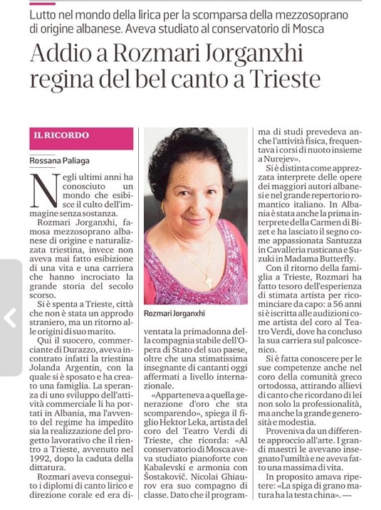 Ashtu thjesht, pa bujë, dinjitetshëm e gjithë fisnikëri, kjo Zonjë nuk ka ardhur si herë të tjera në qytetin e saj. Ka ardhur ndryshe…! Ka ardhur me një mision. I përveçëm ky akt. Shkodrës, ku kaloi një pjesë të jetës së saj edhe artistike, me dashurinë e zemrës, ka vendosur që aktivitetin e saj magjik teatror shkodran, t’ia dhurojë. T’ia dhurojë me qytetarinë e saj që e karakterizon. Mbase duke shlyer një peng. Mbase duke lënë një amanet.