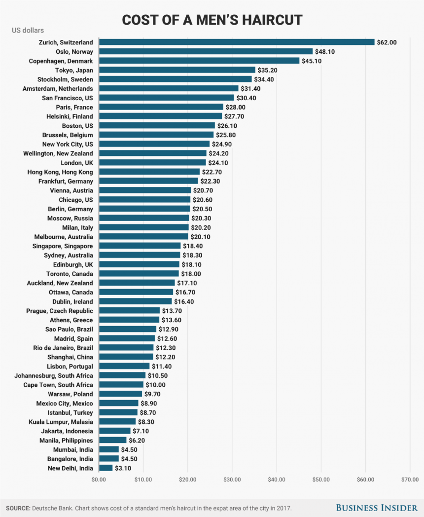 Por, nëse prerja e flokëve në këto vende nuk është ide e mirë – të jesh frizer – mbase do të jetë shumë fitimprurëse.Më poshtë, e keni grafikun të cilin e ka publikuar “BusinessInsider”, të shihni çmimet në të gjitha vendet.