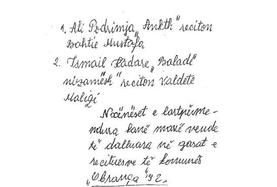 Këta rreshta të shkruar nga dora magjike e profesorit Ejup Shala, sot me shumë mall e respekt ruhen nga autori i këtij shkrimi Arif Ejupi.