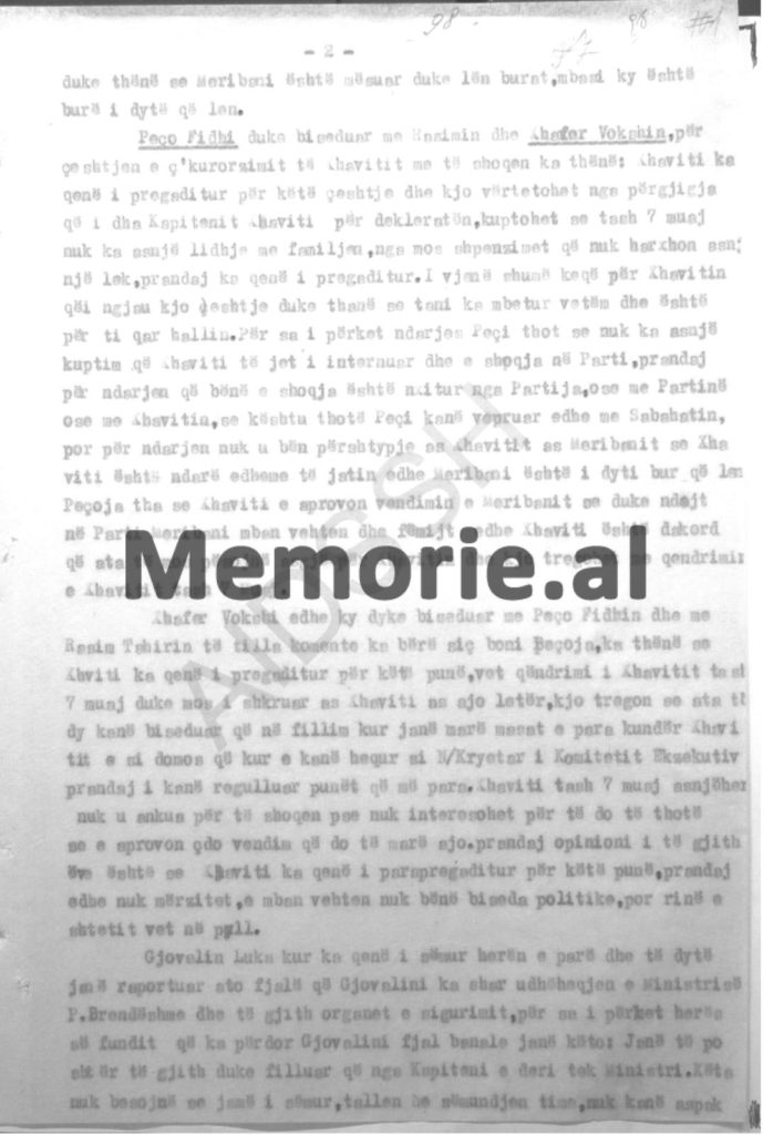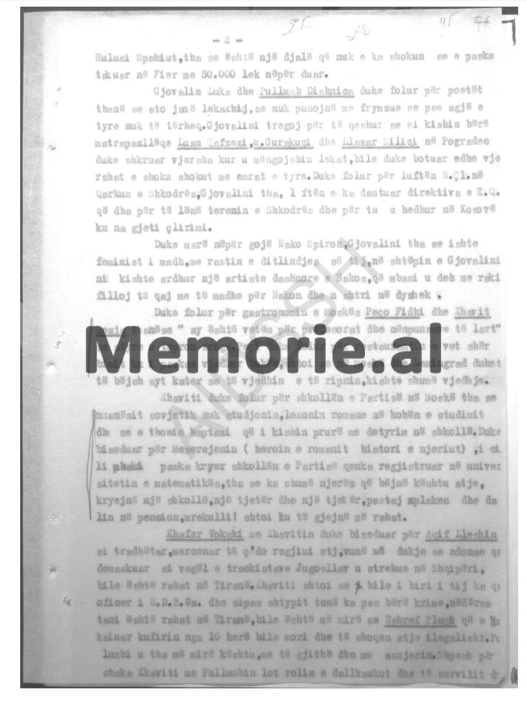 Për periudhën 1 janar 1955, 30 mars 1957, t’i thuhet se shpërblimi i caktuar nuk i jepet, për arsye se nuk ka vepruar sipas udhëzimeve tona, dhe si konsekuencë ka shkëputur lidhjet me zbulimet e huaja dhe nuk ka treguar interesim për zbatimin e detyrave të ngarkuara.