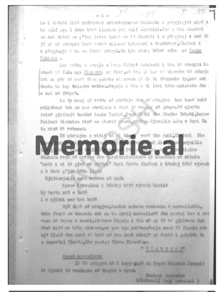 Duke filluar nga data 1 korrik 1951, Agjentit “Trimi” t’i caktohet rroga mujore 8.000 (tetë mijë) Lek, të cilat të mbahen më nj’anë deri sa ai të kthehet nga misioni i ngarkuar.
