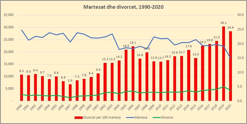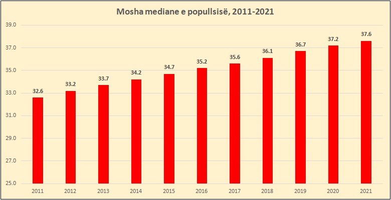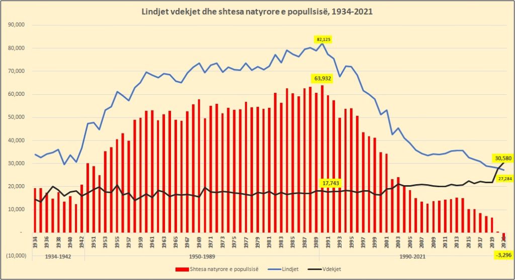 Grafiku nga viti 1934, si po “tretet” Shqipëria, me shtesë natyrore negative për herë të parë në histori