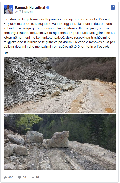 Haradinaj: Rruga Deçan – Plavë nuk është brenda zonës së mbrojtur