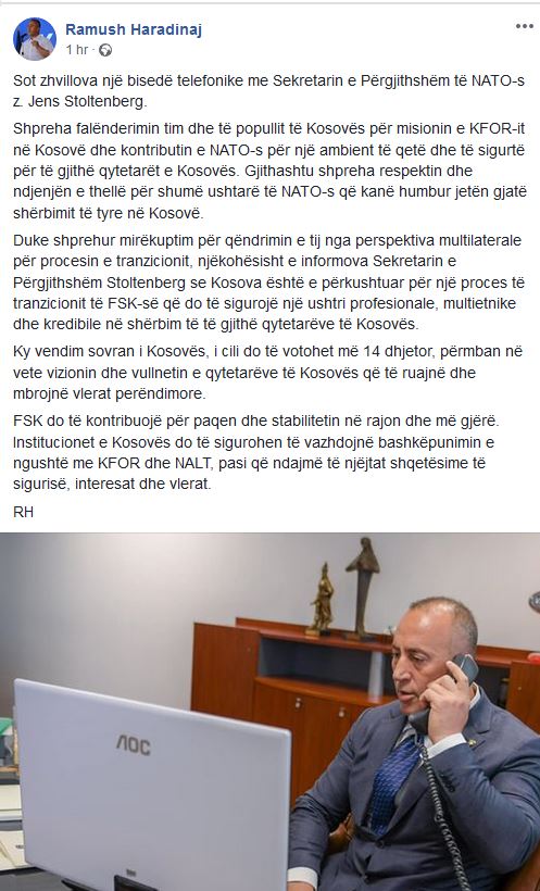 Haradinaj: Ushtria e Kosovës – vendim sovran