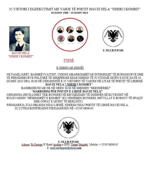 Ftesë: Havzi hero Shqipëria nuk të harron! Marrshim për poetin e lirisë Havzi Nela