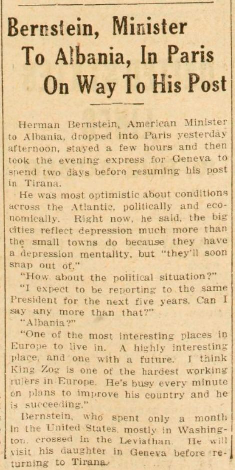 Herman Bernstein (1932) : “Mbreti Zog është një nga udhëheqësit që punon më shumë në Europë! Shqipëria…”