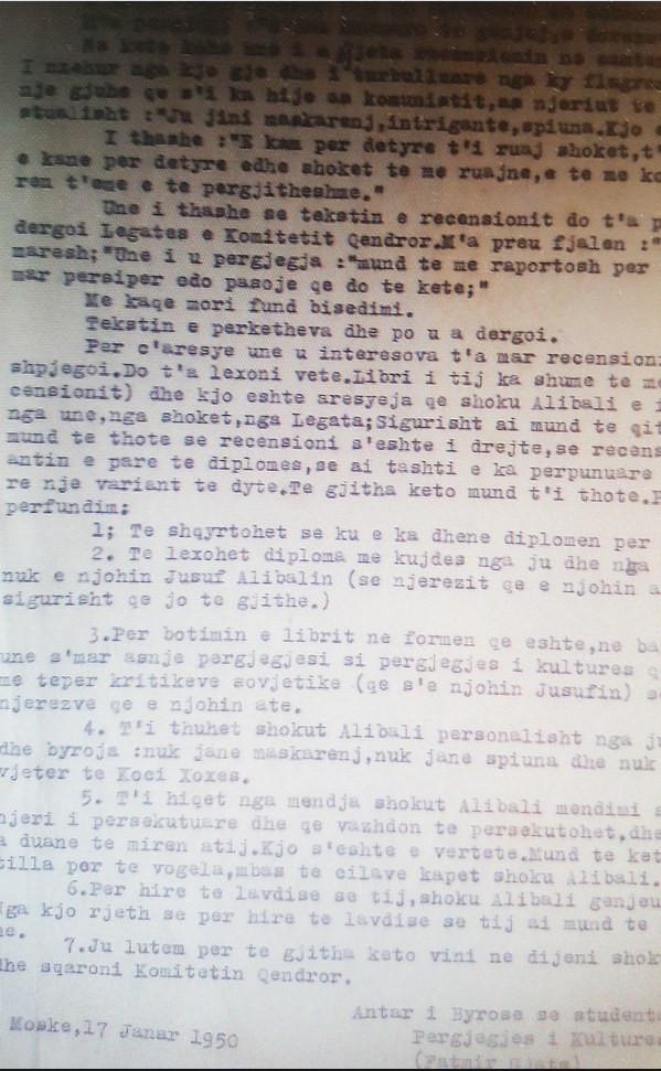 Për periudhën 1 janar 1955, 30 mars 1957, t’i thuhet se shpërblimi i caktuar nuk i jepet, për arsye se nuk ka vepruar sipas udhëzimeve tona, dhe si konsekuencë ka shkëputur lidhjet me zbulimet e huaja dhe nuk ka treguar interesim për zbatimin e detyrave të ngarkuara.