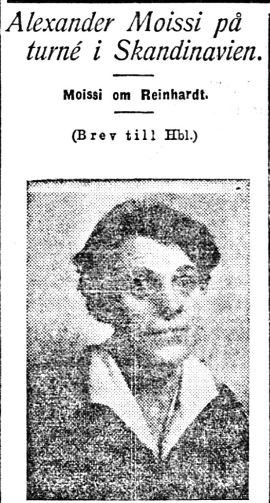 — Po, përgjigjet Moisiu me një buzëqeshje miqësore, — po, do të ndodhë, nëse gjithçka shkon mirë. Domethënë kontratat, marrëveshjet dhe të gjitha formalitetet e tjera të mundshme. Gjithmonë duhet shumë kohë me gjëra të tilla. Por pothuajse me siguri do të vizitoj kryeqytetet nordike në shkurt. Kopenhagën, në “Teatrin Mbretëror”, ku gjeta shumë vullnet dhe mirësjellje vitin e kaluar. Për Kristianinë (Oslon), ende nuk është arritur një marrëveshje përfundimtare, as për Helsinkin, ku do të doja të vija duke ditur vendin e rëndësishëm që zë arti skenik atje. Në Stokholm, unë tashmë jam plotësisht dakord me drejtorin Ranft. Në fakt, ia di për nder Ranft-it më së shumti për realizimin e planeve të mia të udhëtimit nordik, — shton Moisiu.