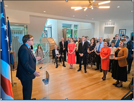 Ndihmës Sekretari i Shteteve të Bashkuara për Evropën dhe Euroazinë, James O’Brien duke folur me rastin e ceremonisë së përurimit të objektit të ri të Ambasadës së Republikës së Kosovës në Washington