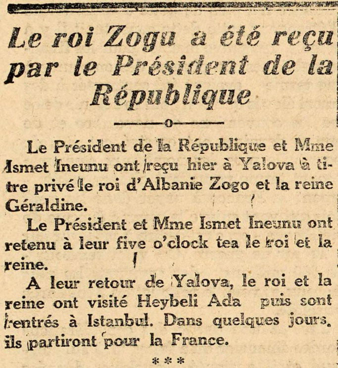Istanbul (1939)- Kur presidenti turk Ismet Inönü priti për një vizitë private mbretin Zog dhe mbretëreshën Geraldinë