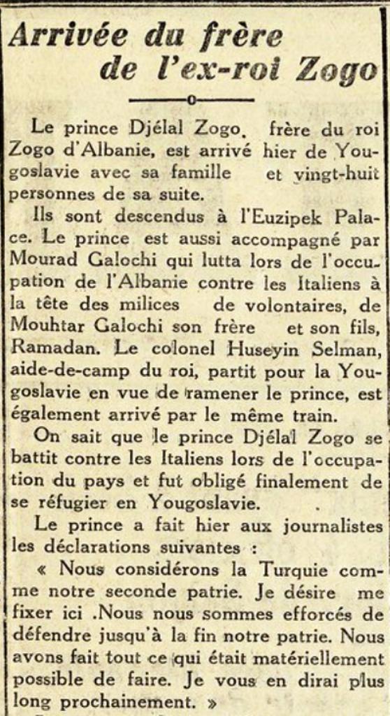 Istanbul (1939)- Xhelal Zogu, vellai i mbretit Zog, ka mbërritur në Stamboll bashkë me suitën e tij. Rrëfimet e para të princit dhe shoqëruesve të tij.