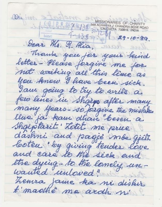 “Ja kam dhan besën e shqiptarit Zotit me sjellë dashni e paqe”! Ekspozohet letra e rrallë e Nënë Terezës në shqip (FOTOT)