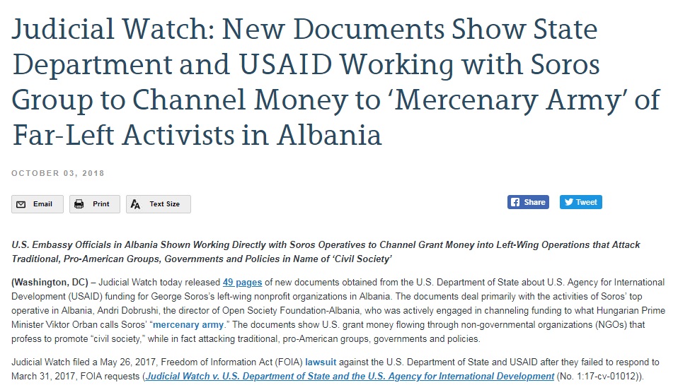 ‘Judicial Watch’: DASH e USAID punuan me Soros për ‘ushtrinë mercenare’ në Shqipëri (dokumente të reja)