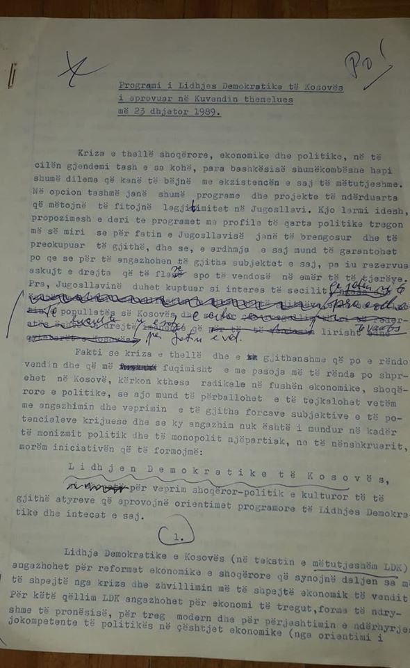 Jusuf Buxhovi po vijon me publikimet e dokumentave autentikë: PROGRAMI I LIDHJES DEMOKRATIKE TË KOSOVËS*
