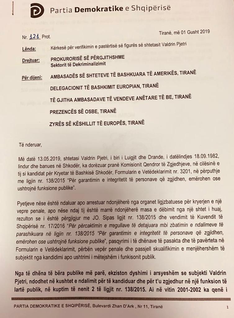 A asht normal, o bashk-vllazën e motra shqyptarë të informojn ambasadat, organizata botnore, OSBE, etj të tiranës me informacion në formë dhe përmbajtje të Fletë Rrufeve, dacibao për nji shqyptar qi asht zgjedhë Zotni Valdrin Pjetri, kryetar bashkijet të Shkodrës nga kryesia e PD-ës?