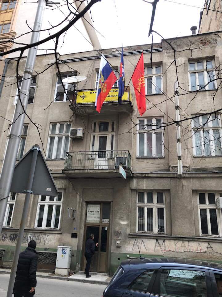 Partia Lëvizja Popullore për Maqedoninë, e udhëhequr nga Janko Baçev është partia e parë në Maqedoni që mban flamurin rus në selinë e saj.