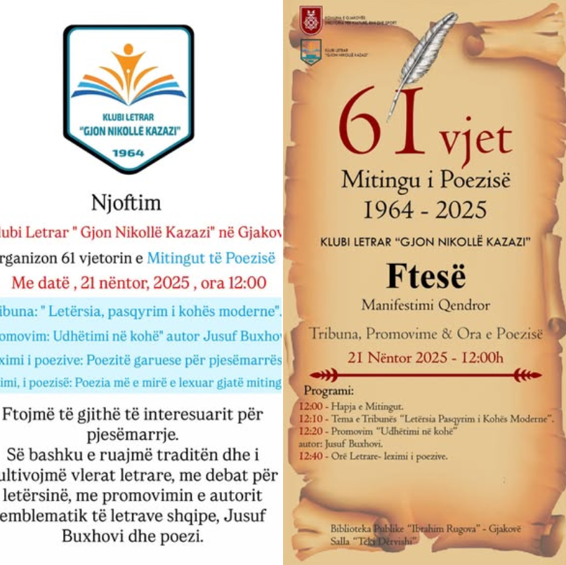 Klubi letrar “Gjon Nikollë Kazazi”: MBAHET MITINGU I POEZISË, i 61-TË NË GJAKOVË
