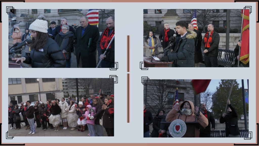 Grupi i të Rinjve të Kishës Orthodokse Shqiptare Fjetja e “Shën Marisë”, zbulojnë me fjalimet e tyre në pak histori edhe qëllimin se përse ata janë mbledhur në sheshin para bashkisë së qytetit të duke treguar se janë pjesë e qytetarëve të tij dhe ruajtës e mbrojtës të traditave e vlerave të kulturës dhe familjeve shqiptare që janë thurur për më shumë se një shekull në jetën e shoqërisë amerikane.