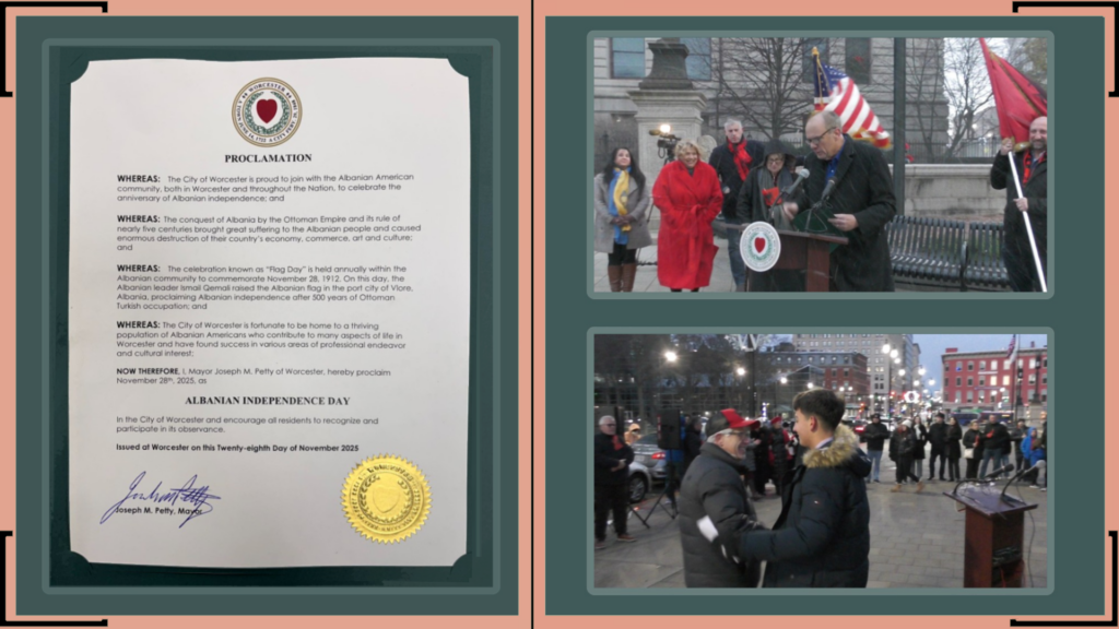 Ashtu sikurse edhe një thënie e njohur për motin e bregut Veri Lindor të  kontinentit të Amerikës së Veriut shpreh se “Nëse nuk ju pëlqen moti në New England, prisni një minutë”… kjo pikërisht sikur u plotësua në pasditen e 28 Nëntorit, 2025 kur një grup jo i vogël bashkatdhetarësh shqiptaro-amerikanë u mblodhën për të Nderuar Ditën e Flamurit, 113 vjetorin e Pavarësisë  së Shqipërisë.