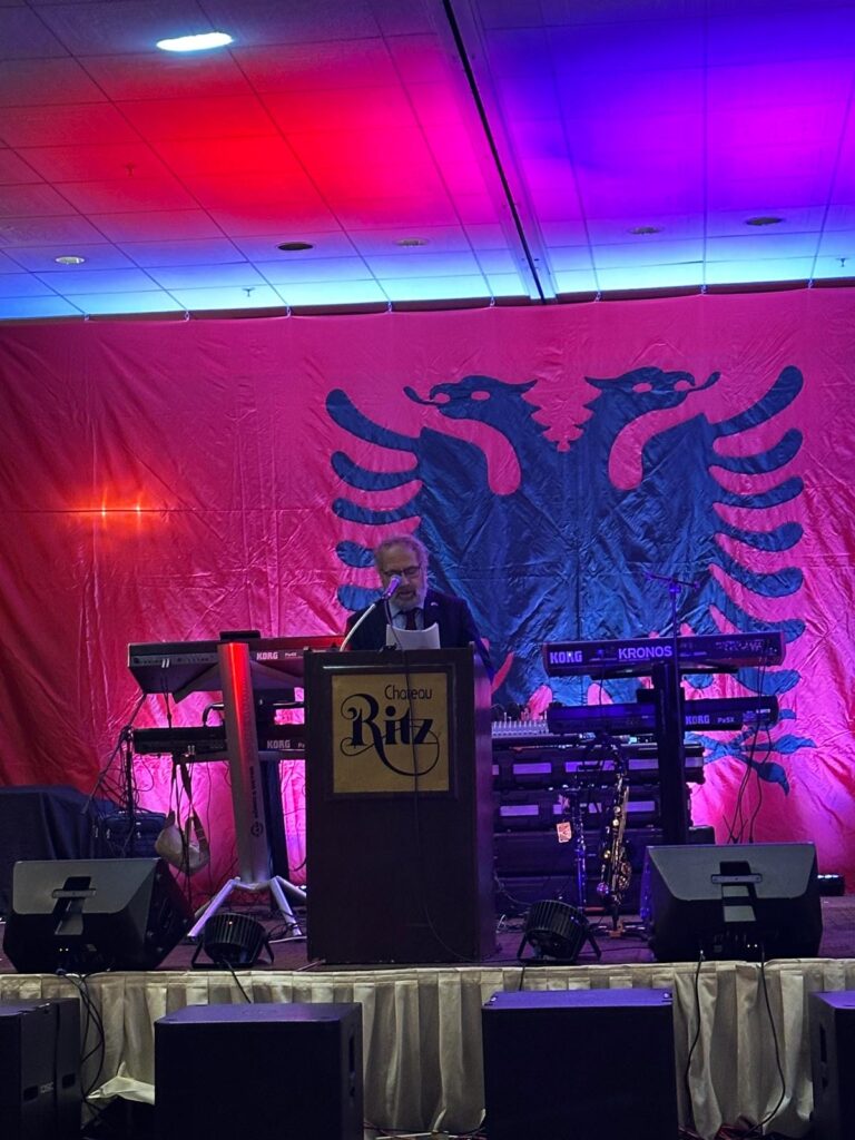 Kur u mblodhëm, pamë se ishim shqiptarë nga të gjitha trevat tona, vërtet Shqipëria natyrale, etnike, – vetëm në SHBA ndodh kjo, –  dhe mes nesh erdhi me bashkëshorten e tij dhe kongresmeni i shquar, me origjinë arbëreshe, Joe DioGuardi, që i kushtoi jetën çështjes shqiptare, çlirimit të Kosovës.
