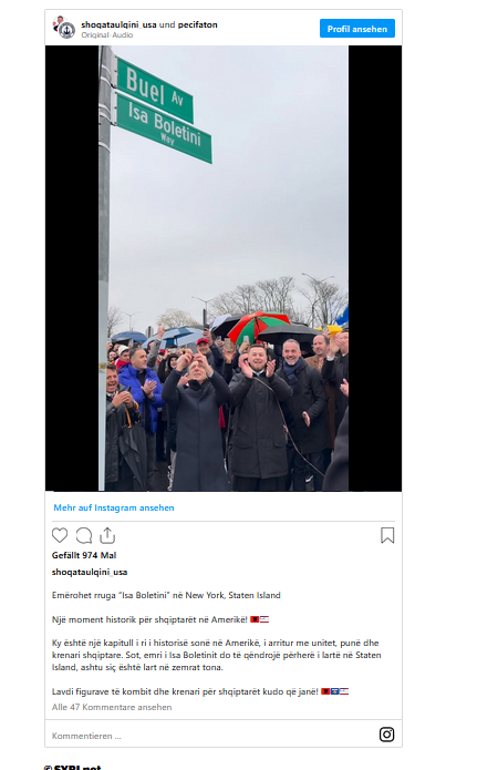 Ky është një kapitull i ri i historisë sonë në Amerikë, i arritur me unitet, punë dhe krenari shqiptare. Sot, emri i Isa Boletinit do të qëndrojë përherë i lartë në Staten Island, ashtu siç është lart në zemrat tona.