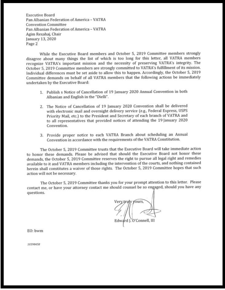 Menduan se me akuza te fabrikuara, presione dhe me gjyqe vatranet Agustin Mirakaj, Valentin Lumaj do terhiqeshin, por Gjykata Federale i hodhi poshte te gjitha pretendimet e tyre.