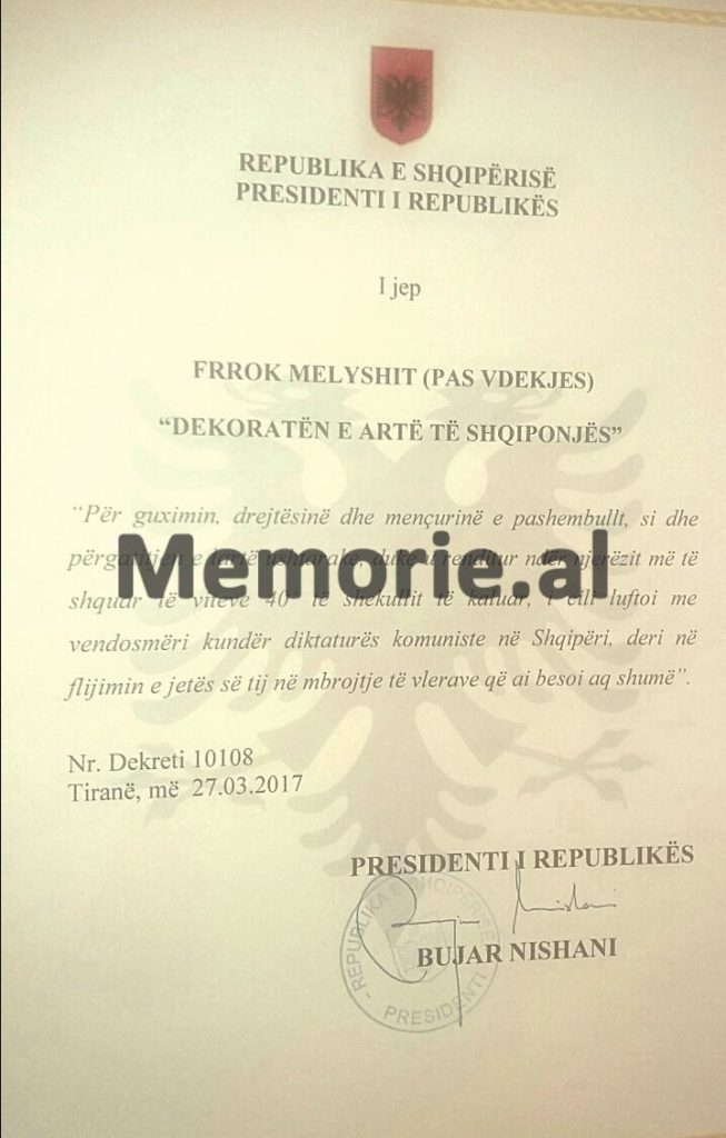 Pse nuk u largua Frrok Mëlyshi nga Shqipëria si Gjon Markagjoni etj, pasi ai e dinte se ishte i dënuar me vdekje që nga koha Luftës?!