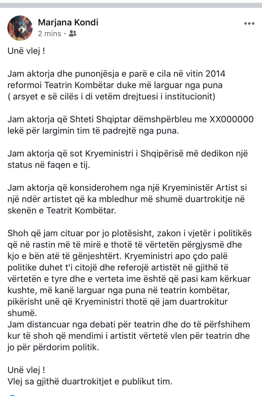 Kondi “godet” Ramën: Ja pse më hoqën nga puna, e vërteta për teatrin