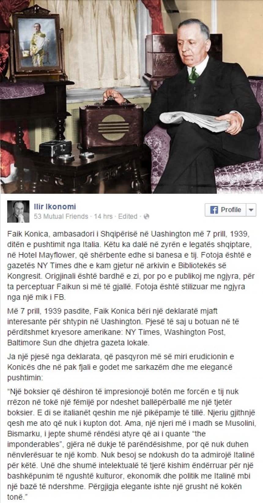— S’ka rëndësi, në të vërtetë! Ai mund të organizohet nga parlamenti shqiptar ose nga Kombet e Bashkuara. E rëndësishme është që çdo qytetar të mund të shprehet lirshëm, pa asnjë lloj detyrimi. Për momentin, gjithçka që mund të bëj në favor të vendit tim, po e bëj…