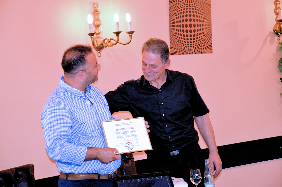 Shkelzen Fetahaj duke pranuar mirënjohjen nga Bashkim Kasumaj