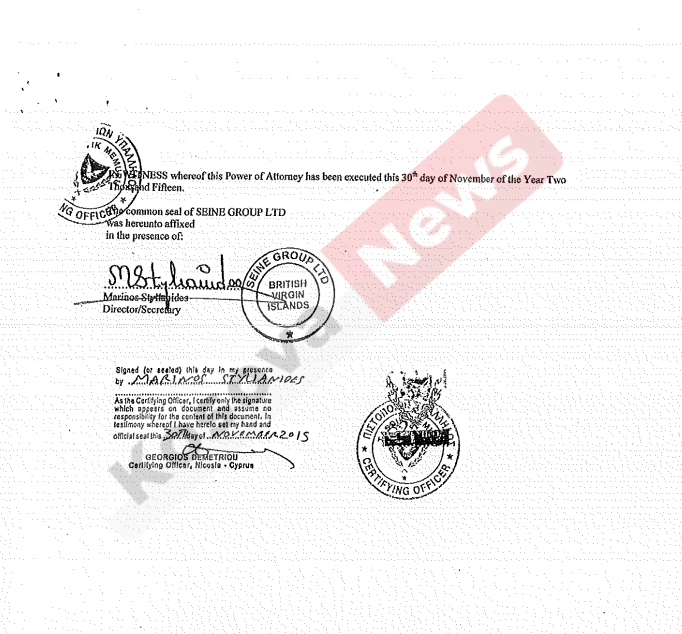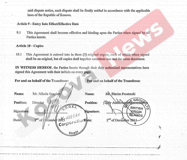Praktikat juridike për bartje të aksioneve nga K-Media Corporation DOOEL të Shkupit që zyrtarisht ishte pronare e Klan Kosova Sh.P.K (që e përfaqësonte një maqedonas, z. Nikolla Gjeorgjiev) tek kompania nga British Virgin Islands i ishte besuar (dully authorized) siç shkruan në dokumentin e siguruar nga KosovaNews) një kompanie avokatësh nga Prishtina, të përfaqësuar nga z. Blerim Prestreshi, sipas autorizimit (Power of Attorney) të dhënë nga një avokat nga Qiproja, z. Marinos Stylianides, i cili në këtë autorizim të shkruar figuron si drejtor dhe sekretar i kompanisë “Seine Group” LTD.