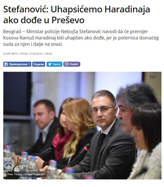 Kurir – Kërcënon Beogradi: Haradinaj arrestohet nëse vjen në Preshevë
