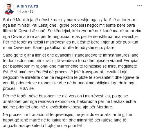 Kurti: Nënshkruesit e marrëveshjes së Mynihut – nuk ishin të autorizuar