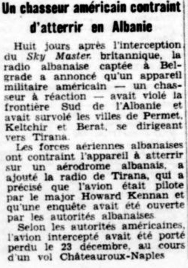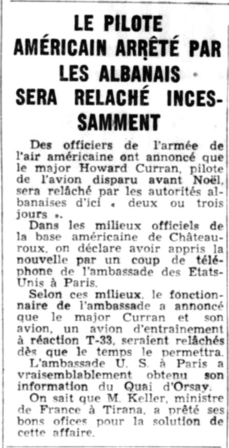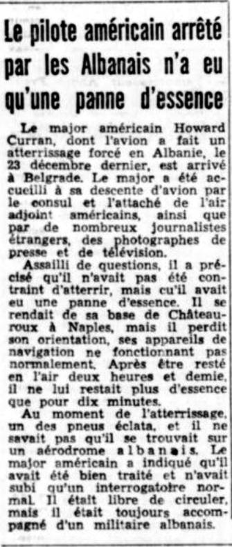 La Croix (1958)- Ja arsyeja e uljes së avionit amerikan T-33 në Shqipëri sipas majorit Howard Curran