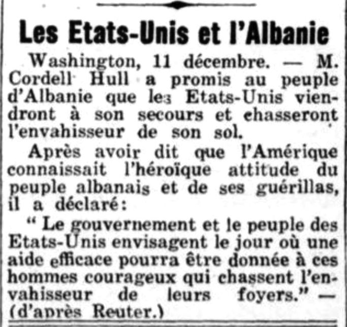La France (1942)- Premtimi i Sekretarit amerikan të Shtetit, z. Cordell Hull, për Shqipërinë dhe luftëtarët e saj guximtarë