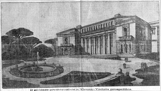 Pallati presidencial në Tiranë. Pamje perspektive — Burimi : La Gazetta di Puglia, e diel, 22 maj 1927, faqe n°3
