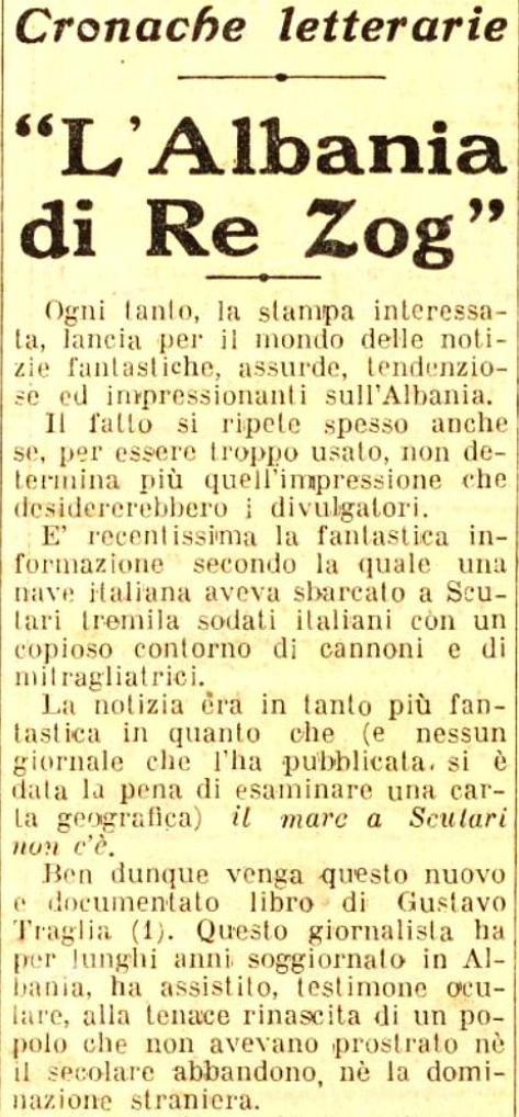 La Nuova Italia (1930)- Pse duhet lexuar libri “Shqipëria e Mbretit Zog” i Gustavo Traglia-s?