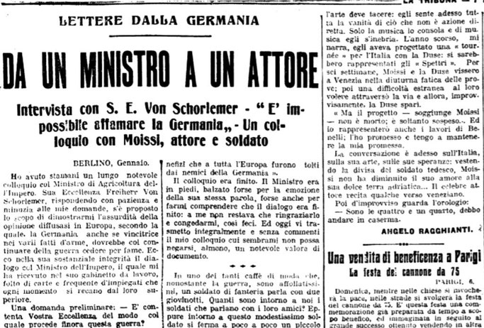 La Tribuna (1915) Angazhimi i aktorit të famshëm në ushtrinë gjermane — Intervista ekskluzive me Aleksandër Moisiun në Berlin
