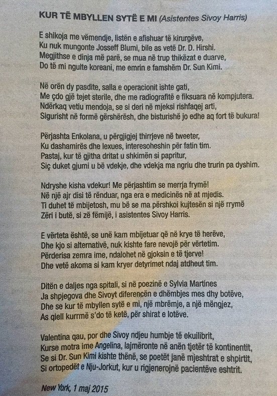 Prandaj dhe sot Flamuri ynë si një vëllai vogël valëvitet pranë atij amerikan si një vëlla i madh, më i fuqishmi në botër dhe i drejtë.