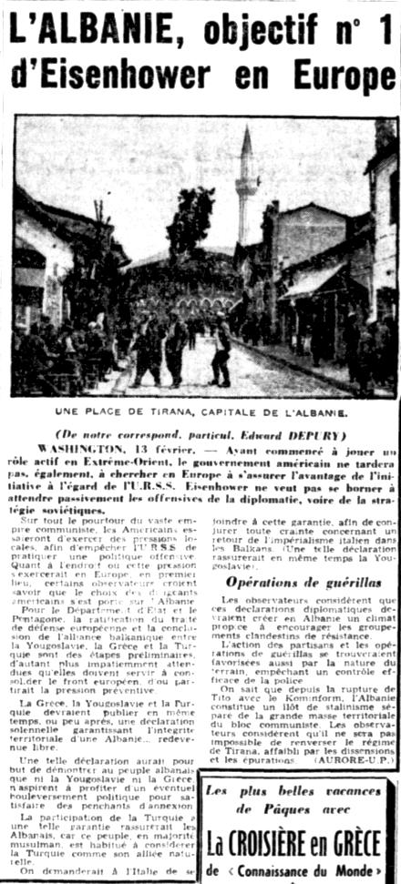 L’Aurore (1953)- Shqipëria, vend strategjik sipas presidentit amerikan Eisenhower për të parandaluar politikën agresive të Bashkimit Sovjetik në Europë