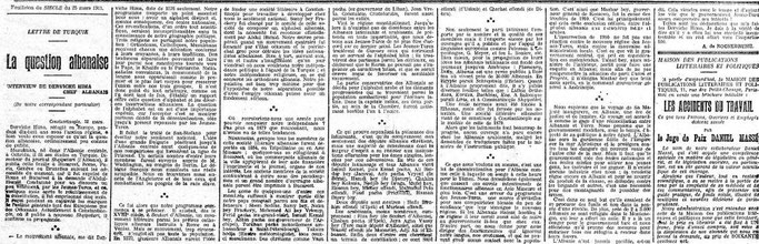 Le Siècle (1911)- Intervista ekskluzive me patriotin dhe publicistin e njohur shqiptar, Dervish Himën, në Kostandinopojë