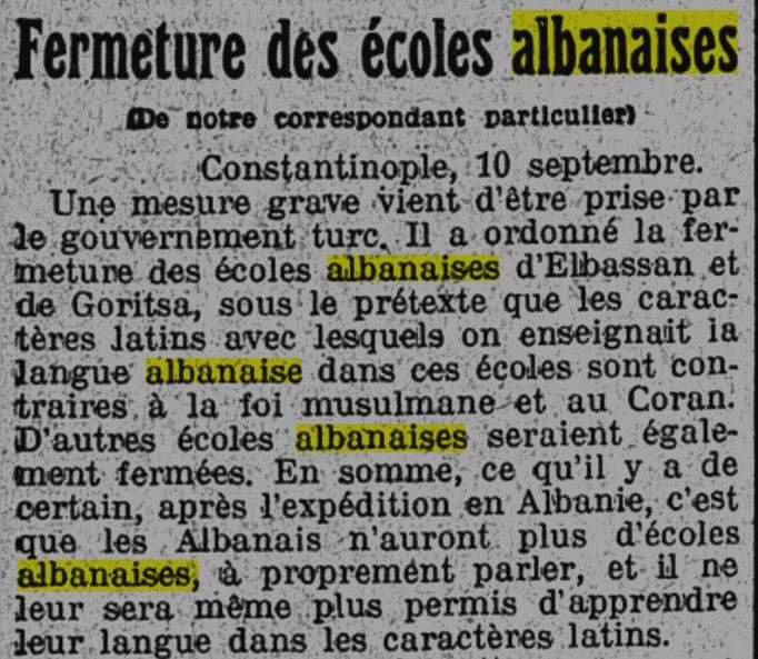 L’Echo de Paris (1910)- Preteksti i mbylljes së shkollave shqiptare në Elbasan dhe Korçë nga qeveria turke