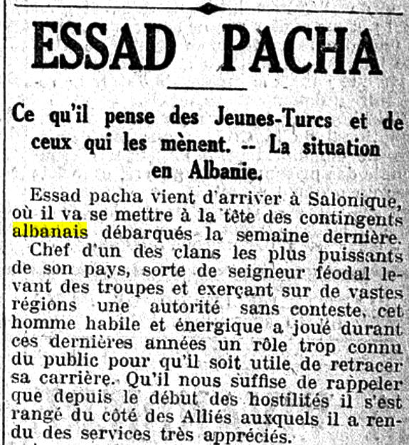L’Echo de Paris (1916)- Intervista me Esat Pashën në lidhje me situatën në Turqi dhe Shqipëri