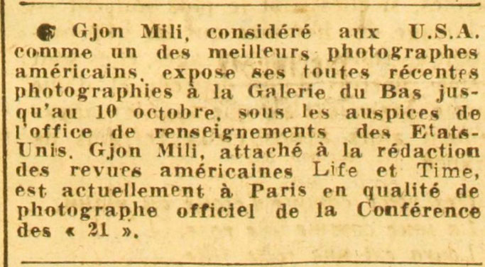Les Lettres françaises (1946)- Ekspozita e Gjon Milit në Paris, nën kujdesin e Zyrës së Inteligjencës së Shteteve të Bashkuara të Amerikës