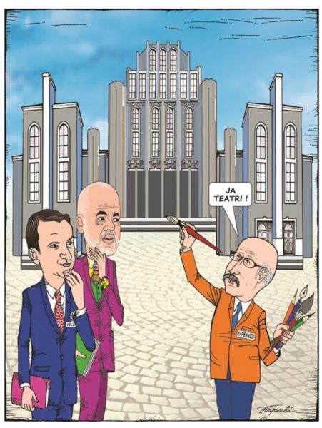 Teatri i ri, sipas premtimit tuaj (jo sipas projektit që keni paraqitur), do të ndërtohet në të gjithë territorin që i takon sot Teatrit. Pa kulla. Ne nuk ju besojmë. Hapni një konkurs kombëtar apo ndërkombëtar për një projekt Teatri apo kompleksi teatror, që të zërë të gjithë territorin ekzistues të Teatrit. Ta shikojnë të gjithë. Artistë e qytetarë, të binden e të zgjedhin. Ky është edhe slogani juaj ‘Bashkëqeverisim’, e jo me projekte në formë papioni, fjongoje apo ushkuri që zë një copëzë nga gjithë ai territor. Artistët e qytetarët do t’i bindni vetëm me projektet e jo me fjalë. Si Hamleti…fjalë…fjalë…fjalë, ndërsa ju, fyerje…sharje…ofendime. Duam projekte…projekte…projekte, e më pas vepra …vepra…vepra. Edhe nëse padashje del ndonjë kryevepër, e pranojmë me kënaqësi. A e dini ju se cila është vërtet e padiskutueshme dhe e gjithëpranueshmesi një kryevepër? Cila? Heqja dorë nga shembja e Teatrit Kombëtar. Kryevepër!Kjo mund të jetë kryevepra juaj! Gjer më sot nuk keni bërë asgjë më të madhe e më të rëndësishme se kjo që sapo thashë. Bëjeni! Mos ngurroni. Ky çast një herë vjen në jetë. Dy gjëra keni në dorë, që të lini gjurmë, siç ka qenë edhe dëshirajuaj qysh në hapat e parë në politikë.Sot është koha më e përshtatshme për këtë. Keni në dorë dy kryevepra. Dy gjurmë. E para, hiqni dorë nga Teatri! E dyta, hiqni dorë nga froni! Të dyja janë në dorën tuaj. Koha gjykatësi më i mirë e më i drejtë.