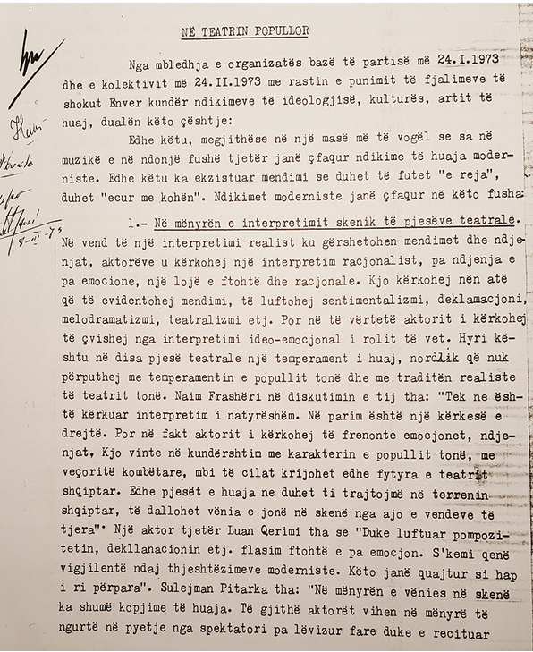 Letra për Enverin: Ja çfarë diskutuan aktorët e Teatrit Popullor për ndikimet moderniste