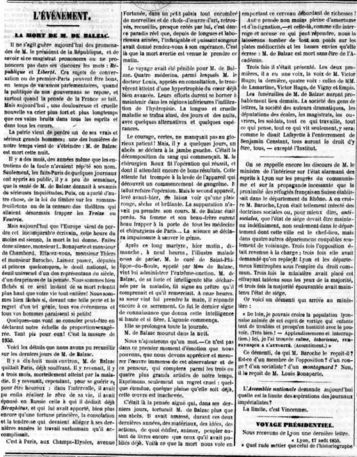 L’Événement (1850)- Momentet e fundit të Honoré de Balzac, të gjithë kanë të drejtë të marrin pjesë në varrim, përveç…